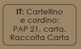 Example: "Cartellino e cordino: PAP 21, carta. Raccolta carta."
